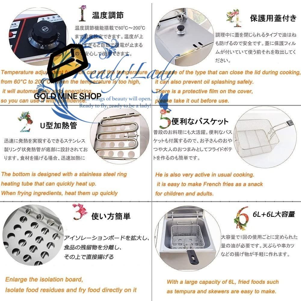 業務用 電気フライヤー 12 L大容量 卓上フライヤー 家庭用 ステンレス 60 200℃温度調節 フライヤー 110 V 2500 W 揚げ物調理器