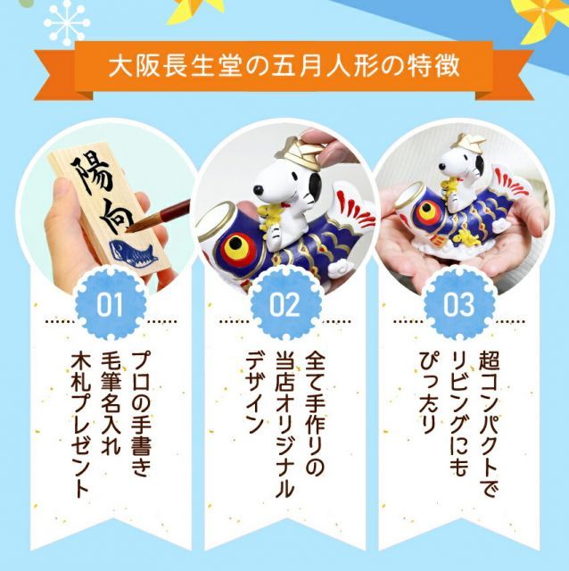 スヌーピー 五月人形 コンパクト 鯉のぼり ミニ鯉のぼり こいのぼり ケース入り 陶器 おしゃれ キャラクター 人形 室内 玄関 ミニ 名前旗 名入れ 木札