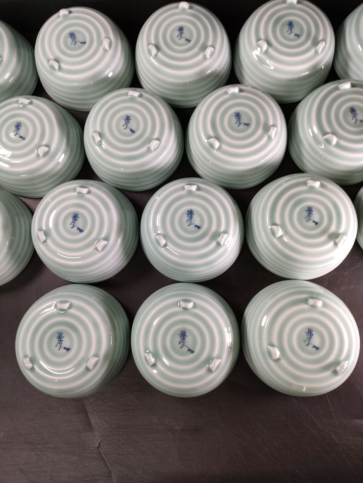 F 4 02 有田焼 錦右衛門 染付果実文青磁深鉢大17客 小鉢6客 懐石揃 大鉢 盛鉢 皿 小皿 小鉢 菓子鉢 懐石料理 懐石道具 茶器