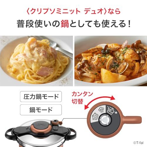 オンライン ティファール 圧力鍋 5 2 L 3 5人用 IH ガス火対応 圧力鍋モードと鍋モードの2つの調理方法 簡単開閉のフタ 角煮 肉じゃが レシピブック付き クリプソ ミニット デュオ メタリックブラウン