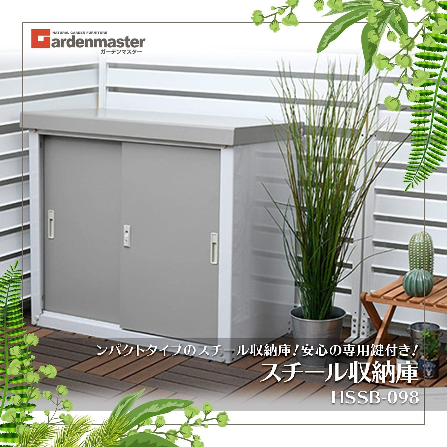 幅90 奥行45 高さ84 cm 鍵付き 転倒防止設計 可動棚板付属 屋外用倉庫 物置収納庫 HSSB 098 ガーデンマスター グレー