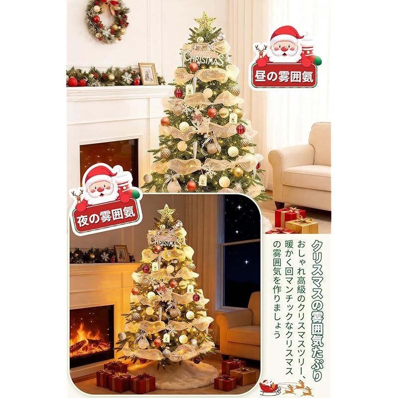 【いろんな場所で大活躍】このクリスマスツリーは、家庭、商業施設、学校、オフィス、公共の場所など、あらゆる場面で活躍します。クリスマスの季節になると、ツリーは人々の目を引き、楽しい雰囲気を演出します。家庭では家族みんなで囲んで楽しむことができ、商業施設や公共の場では、人々にクリスマスの喜びを届けます。※画像は装飾例です。 ページのオーナメント内容をご参照ください。画像内の縫いぐるみ・フェンス・ボトムボックスなどは付属しません。