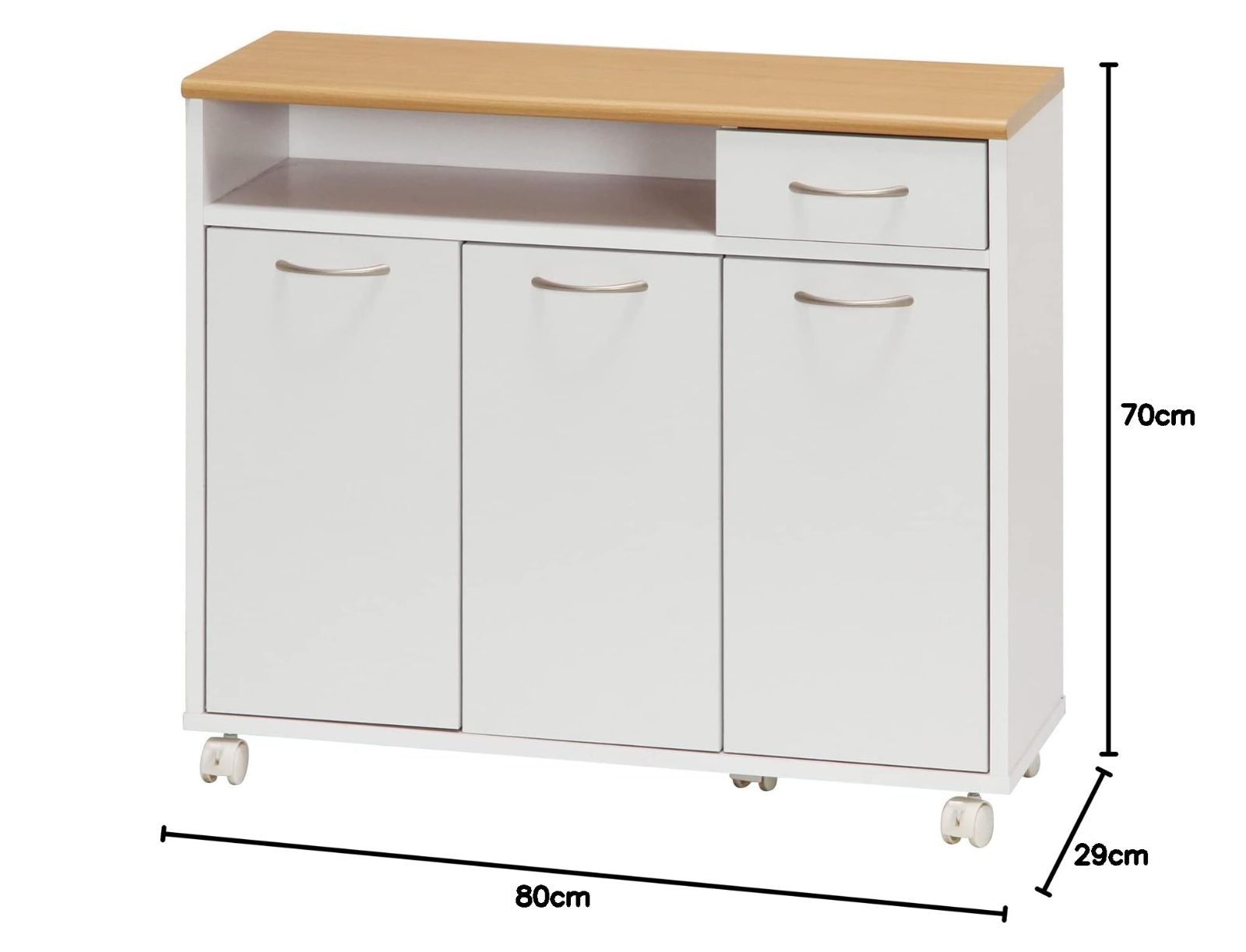 食器棚 ホワイト ナチュラル キャスター付き 幅80 奥行29 高さ70 cm 引き出し収納 キッチン収納 木目調 キッチンカウンター 86927 不二貿易 Fujiboeki