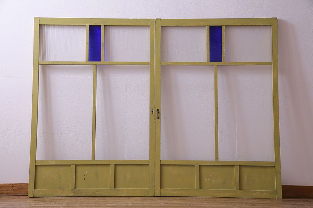 ペイントガラス戸 セット アンティーク建具 色ガラス R 029742