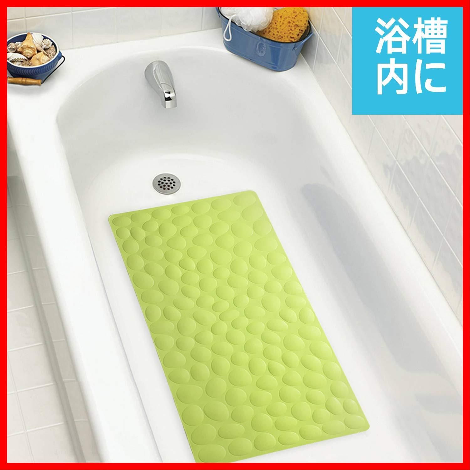 IRETION お風呂 すべり止めマット 浴槽 40×80cm ストーン柄 天然ゴム製 お風呂マット 介護 転倒防止 吸盤付き 柔らかい (グリーン)