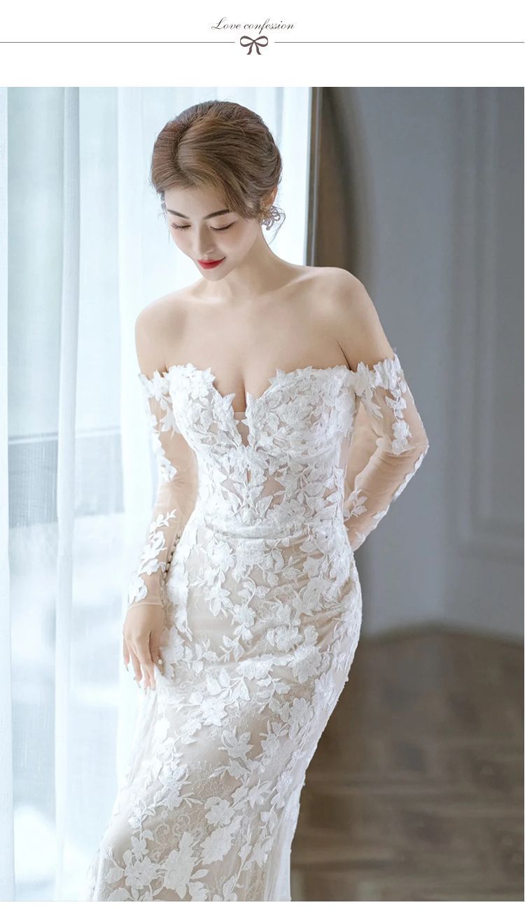 ウェディングドレス レース 長袖 シースルー セクシー 韓国