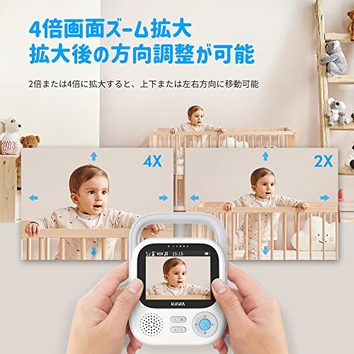 ベビーモニター KAWA 見守りカメラ 2025最新デザイン 2 8インチ HD K画素 5050mAh電池 ベビーカメラ 双方向音声通信 暗視機能付き 子守唄 操作簡単 老人看護 カメラ4台まで接続 Micro SDカード保存