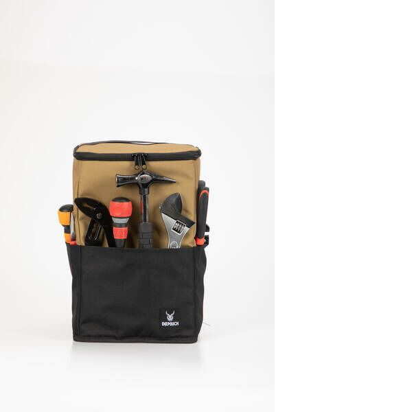 ●本体の外周部には、工具やアウトドアグッズを収納できるマルチベルトとポケットがあり、様々な物を持ち運び可能です。またベルトにはカラビナなどを取り付けることができ、保冷バックとしてだけではなくツールケースなど様々な用途で活用できます。