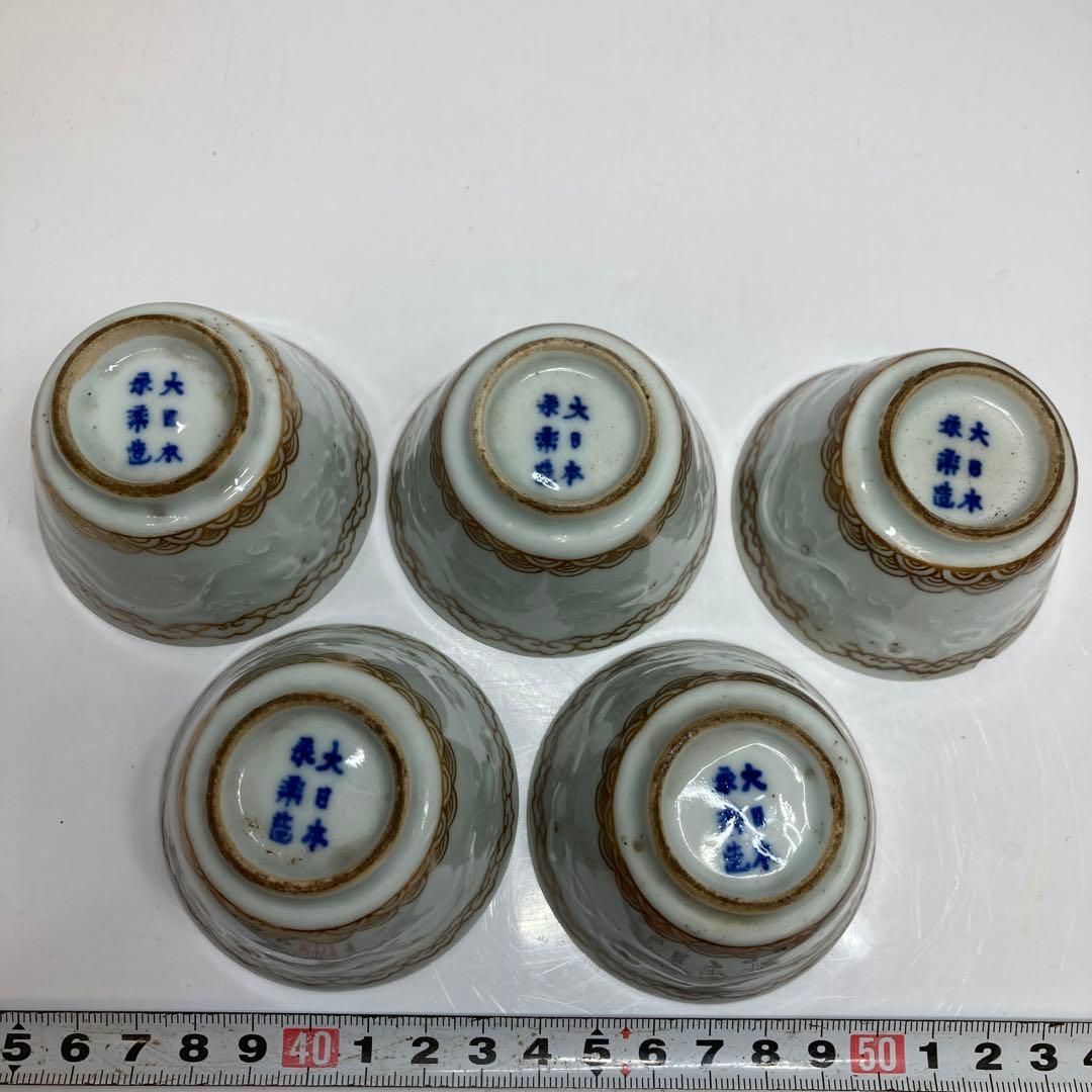 永楽造 龍浮彫図煎茶碗 5客 直径6 5 cm 東H 1030