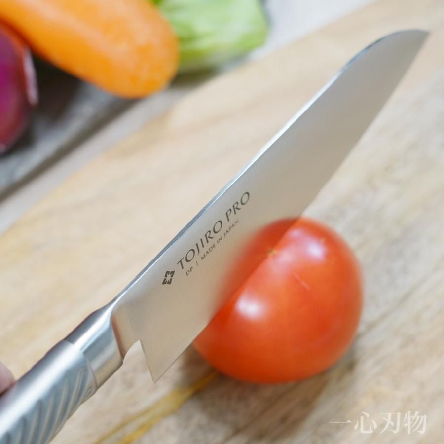 握りやすさ・滑りにくさ・衛生面を追求したトルネード模様のハンドルが特徴のTOJIRO PROオールステンレスシリーズ。刃のV金10号は医療用メスのモリブデンバナジウム鋼よりも硬くて鋭く、切れ味の持続性がさらに優れ、研ぎやすい高級刃物鋼です。