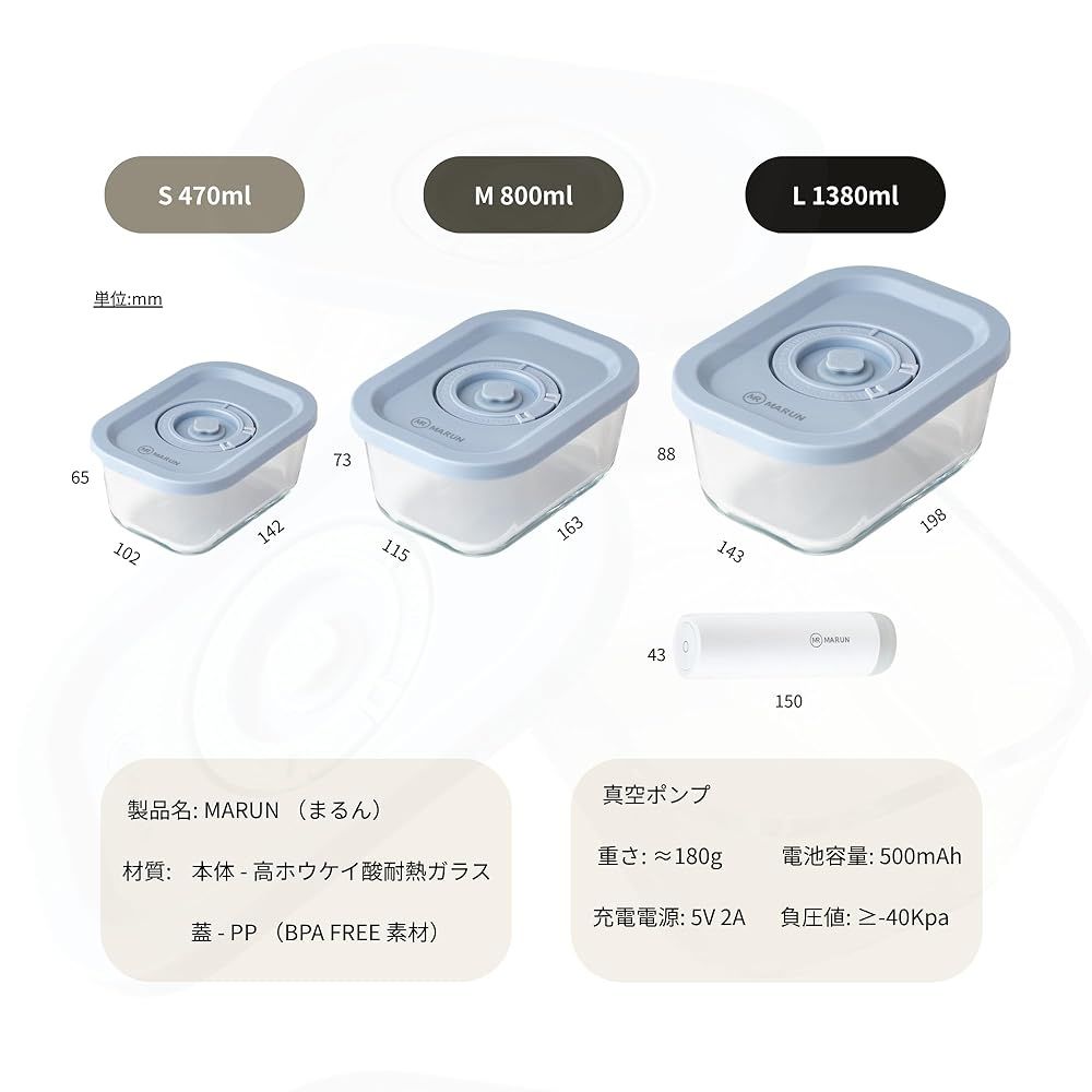 MR MARUN 真空保存容器 Bセット 6点セット S 2 M L 1 自動真空ポンプ 高耐熱ガラス製 冷蔵冷凍 電子レンジ対応 副菜
