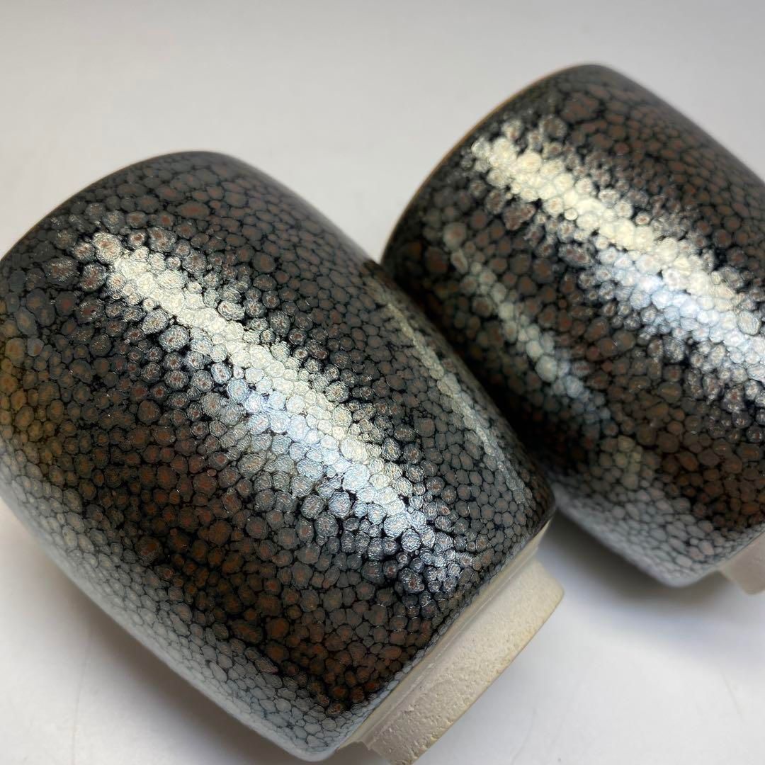 佐々木禅 油滴釉 湯呑一対 共箱 東さ6 0706
