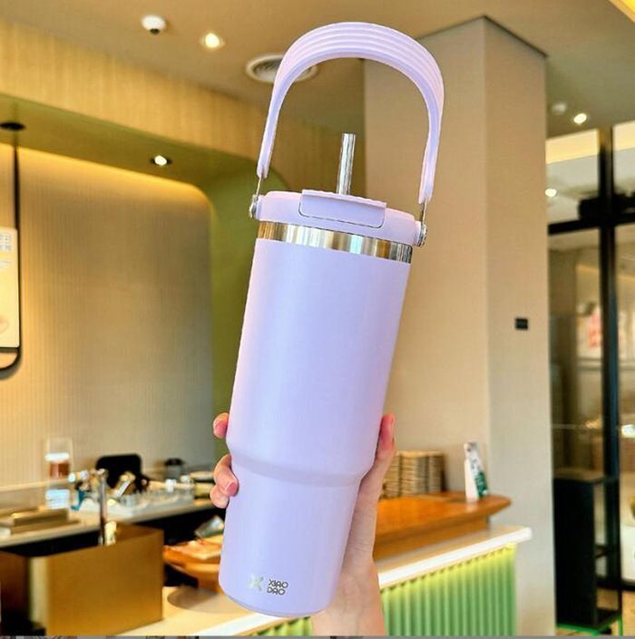 ストロー付きタンブラー 持ち運び 大容量 こぼれない 蓋 保冷 保温 水筒 蓋付き 二重構造 真空断熱 セラミックコーティング タンブラー 304ステンレス wujinb 01