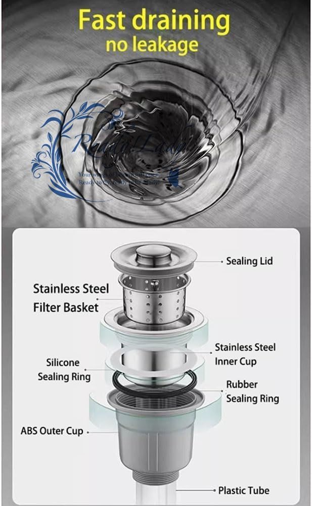 排水キット付き - モップシンクには、ステンレス製の排水口と収納可能な排水管が装備されており、水の貯留と排水に便利です。排水口には漏斗が内蔵されており、繊維、糸、髪の毛などの不純物を捕らえ、効果的にろ過することができます。