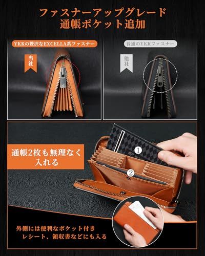 【使いやすいコンパクトサイズ】本革財布を開けると、カードがそれぞれ独立して立ち並ぶので見やすく出し入れしやすい。キャッシュレス時代に最適でカード決済に抜群の実力を発揮する、時短長財布です。「お支払いの動線」を意識し、従来のメンズ長財布を基づいて、「通帳ポケット」を追加し、おろしたお