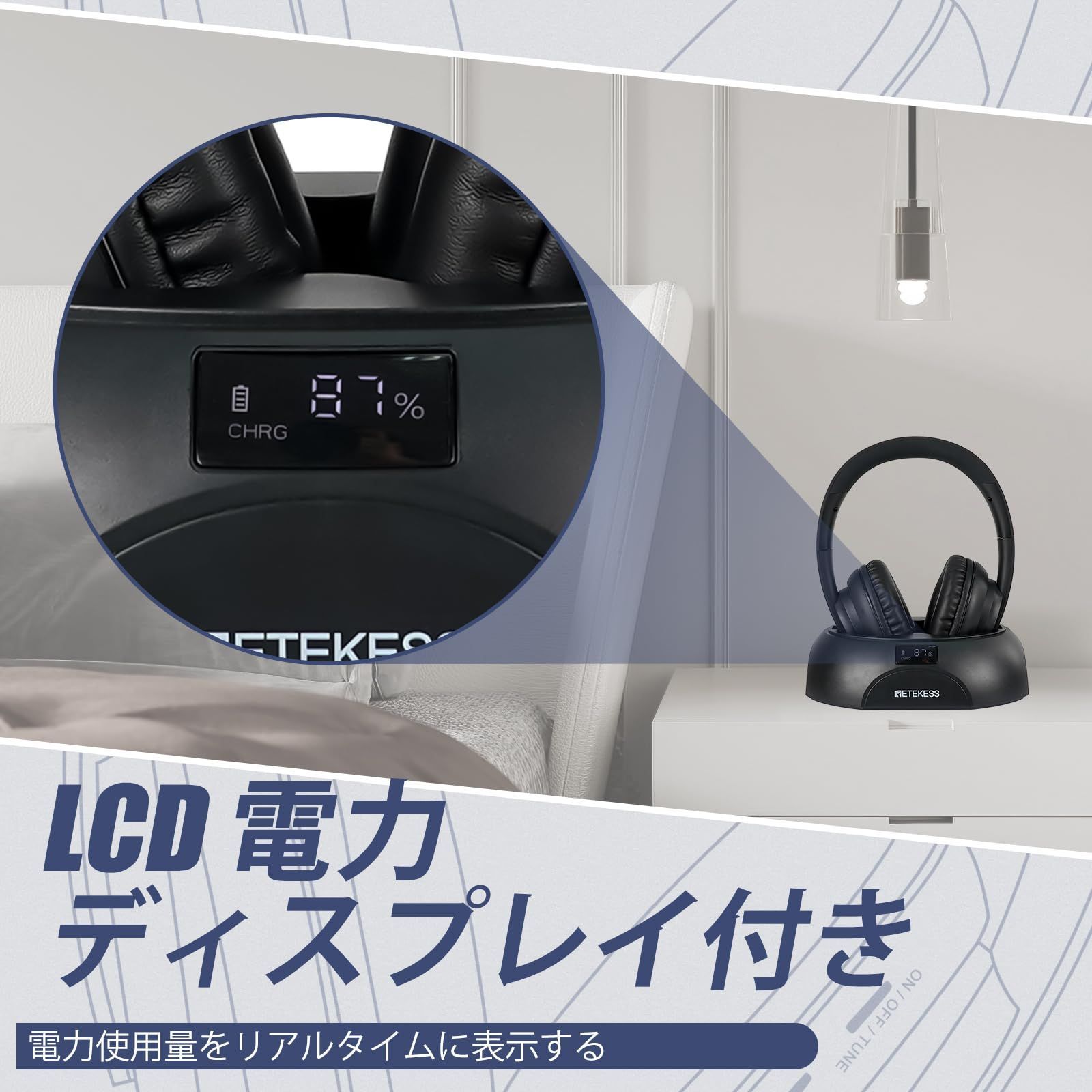 Retekess TA006 ヘッドフォン テレビ ヘッドホン LCD 電量表示 長時間連続再生 広い使用距離 ステレオ 2台以上同時接続可能 同軸/光デジタル/3.5mmオーディオ/RCA対応 オーバーイヤーヘッドホンTV用イヤホン