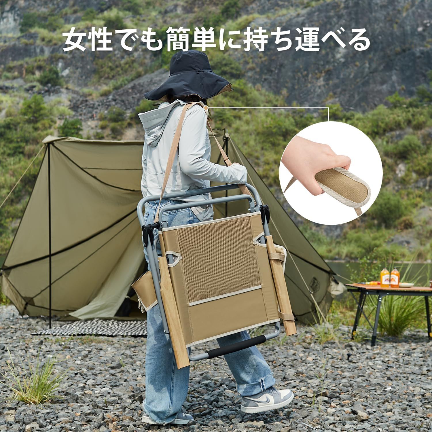 →【幅広い用途】キャンプチェア、焚き火チェア、ビーチチェア、ガーデンチェアなどとして、アウトドアで幅広くお使いいただけます。 同時に、リラックスチェアや昼休みのリクライニングチェアとして、自宅やオフィスでの室内使用にも適しています。