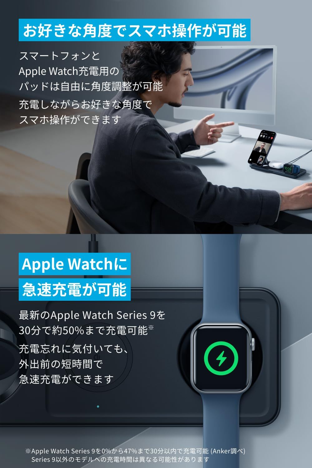 Anker MagGo Wireless Charging Station 3 in 1 Pad Qi 2対応 マグネット式 ワイヤレス充電ステーション ワイヤレス出力 Apple Watchホルダー付 MagSafe対応 iPhone