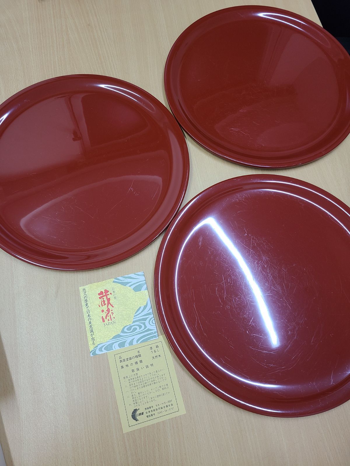 新品 漆器 うるし 天然木 日漆連 登録番号SK-HS-0027 3枚セット