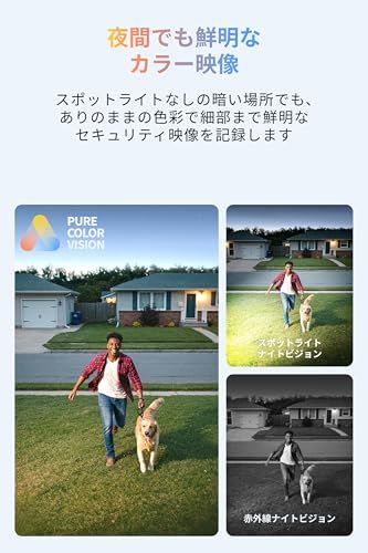 【暗闇でも自然で鮮やかな色合い】 : PureColor Visionで夜間でもスポットライトを使うことなくフルカラーで映像を確認できるため、お子様やペットの目にもやさしく、睡眠を邪魔することなく見守れます。