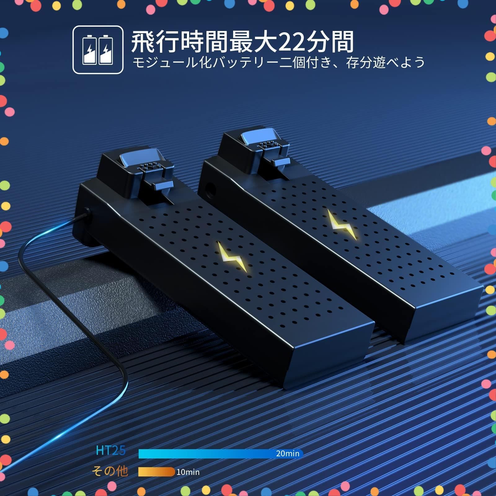 ???【バッテリー2個】大容量モジュールバッテリー2個付き、飛行時間22分間に伸びます。より長い時間空中にとどまり、長いゲーム時間を楽しむことができます。充電がもっと安全になり、取付、取外すがもっと便利になります。