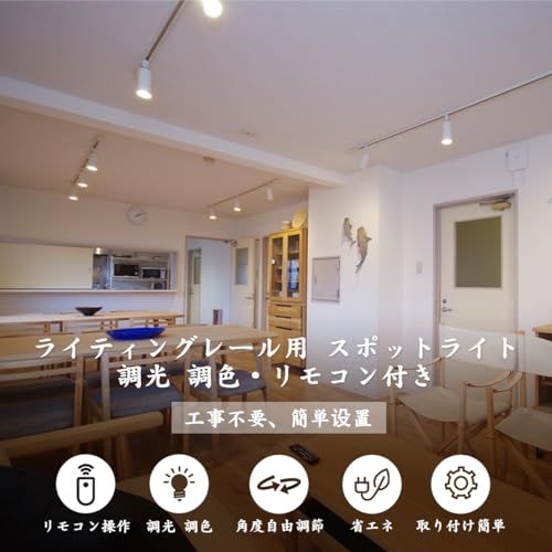 ダクトレール用スポットライト セット ブラック 6 W 60 W相当 E 11口金 LED内蔵 調光調色 リモコン付 2 4 GHz対応 北欧風デザイン 角度調整350度 取付簡単 天井 壁面取付 電球色 昼白色切替 省エネ 屋内照明 fdfab 26 d