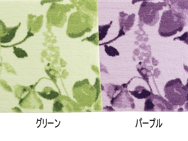躍動感あふれる水彩画の花モチーフがまるでアート作品のようです。トイレマットの美しいグラデーションはインクジェットプリントで表現しています。