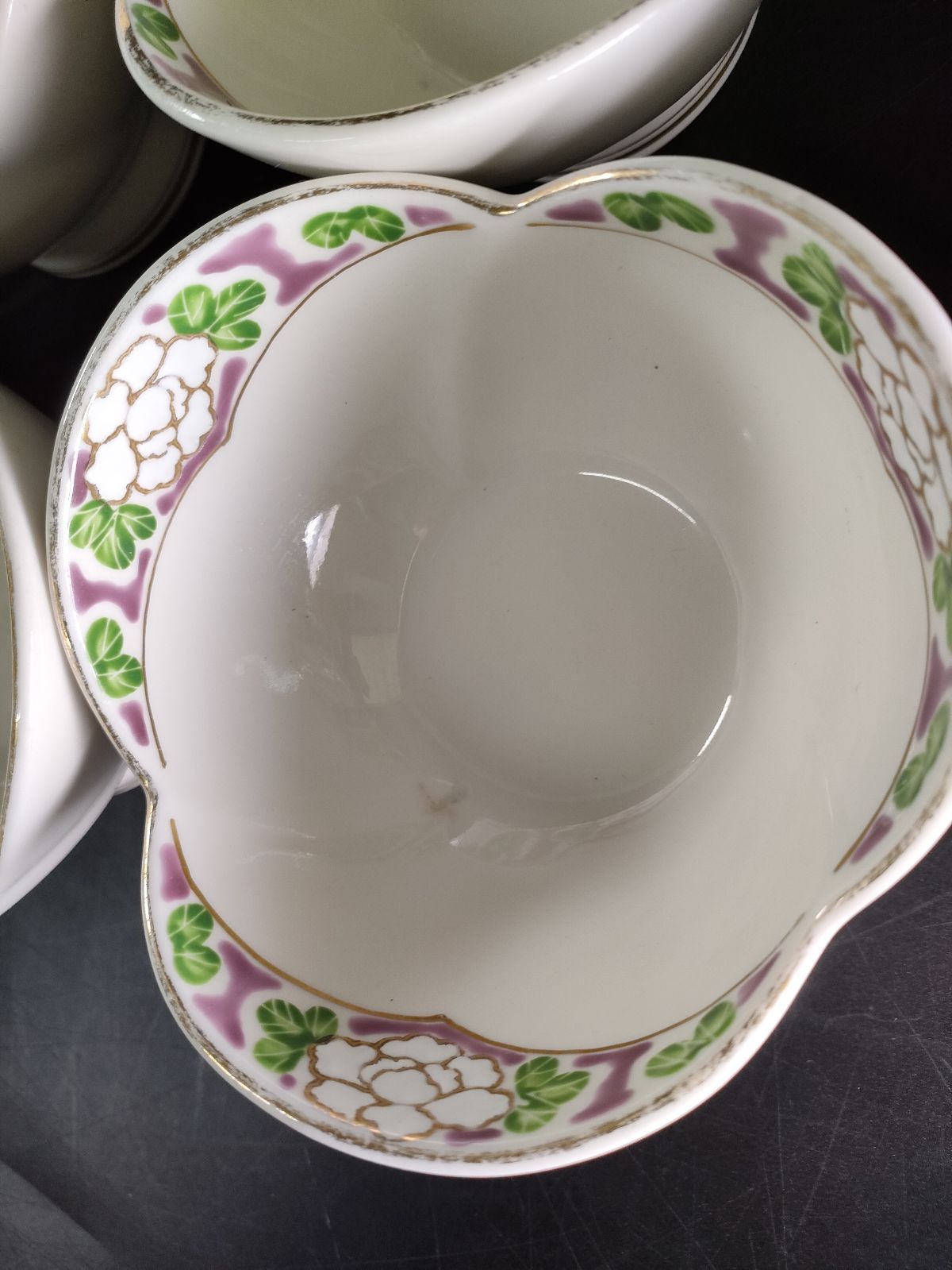 F 5 02 智山窯 三川内焼 牡丹紋三葉形高台小鉢24客 向付 小鉢 小皿 銘々皿 懐石道具 懐石料理
