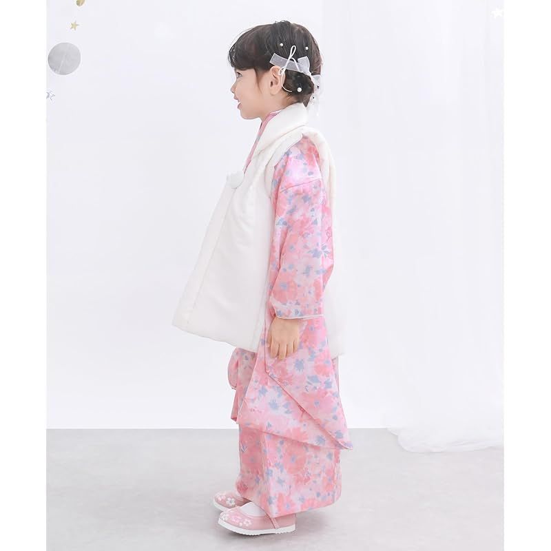 商品名:【新品】 [KYOETSU] [キョウエツ] 自宅で簡単着付け 七五三 3歳 女の子 着物 セパレート 二部式 セット 被布 小物 フルセット 753 4点セット くすみ (12.桃霞の花綴り, 90-100cm)