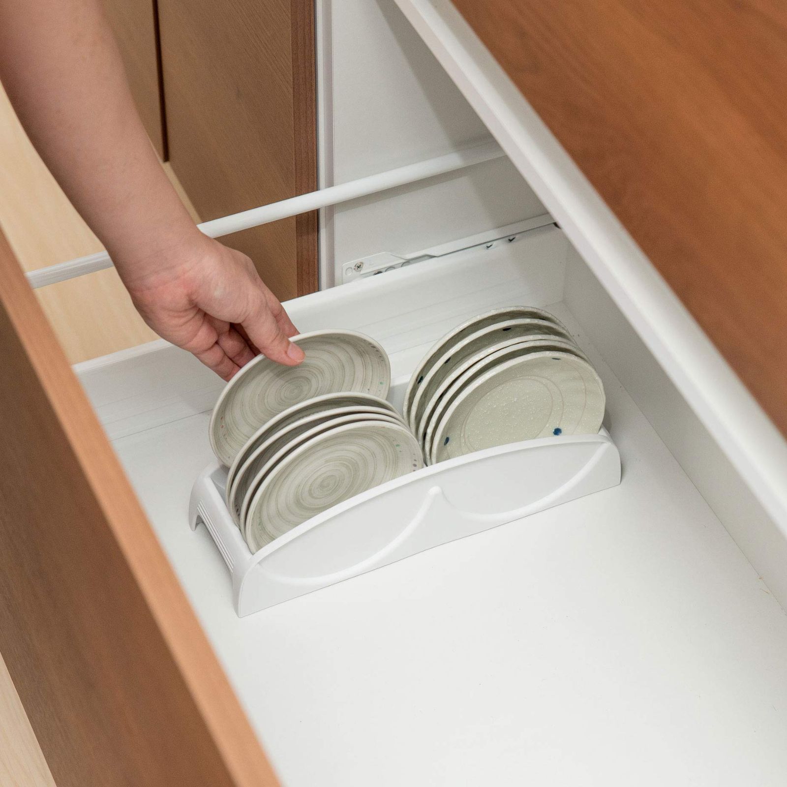 お皿を立てて省スペースに収納、使いたいお皿がサッと取り出すことができます。
