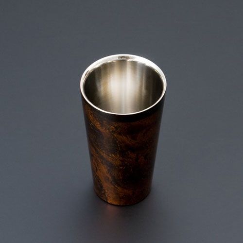 燕三条の研磨技術で仕上げたステンレスのボディに伝統工芸・山中漆器の漆塗りを施したカップです。