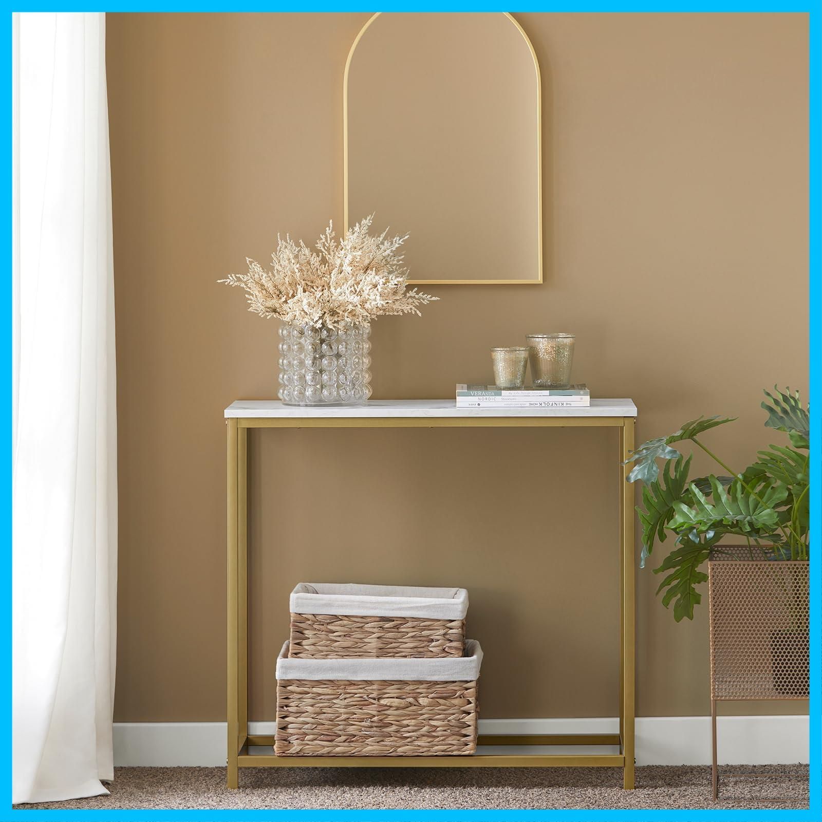 ?【おしゃれ大理石調テーブル】金属色と大理石感のデザイン、スリムなサイズ。玄関口や、ソファーサイドに置くと、部屋をおしゃれに変わります。寝室、リビング、玄関、キッチンどの場所でも活用できます。
