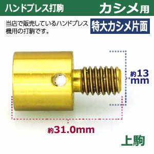 ハンドプレス 打駒 特大カシメ 片面 13 mm 特大カシメ片面用 上駒下駒 入 上駒 幅13 高31 0 軸幅8 下駒 幅22 軸幅19 鉄製 焼き加工 大きいカシメ 片面カシメ 特大 頭 ウチコマ