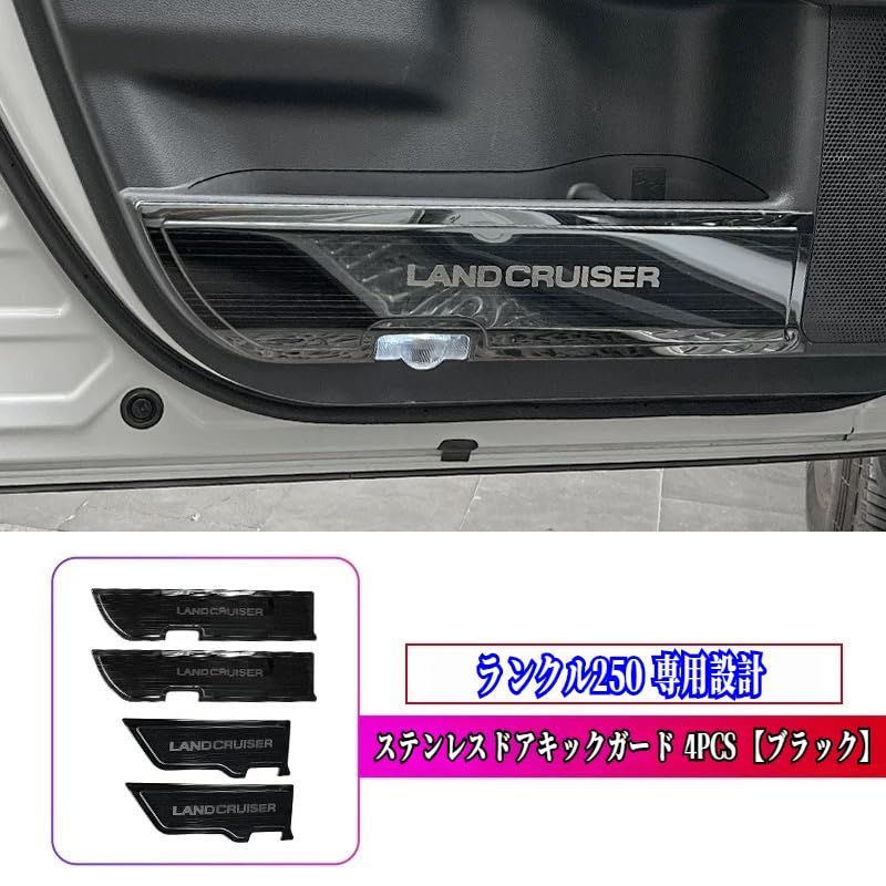 Uxi.Shop新型ランドクルーザー250系対応 LC250 ランクル250 専用設計 ドアキックガード ドアキックマット ドアトリムカバー ドアパネルカバー 汚れ防止 傷防止 インテリアパネル ステンレス材質 内装パーツ カスタム アクセサリー 4点セット (ブラック)