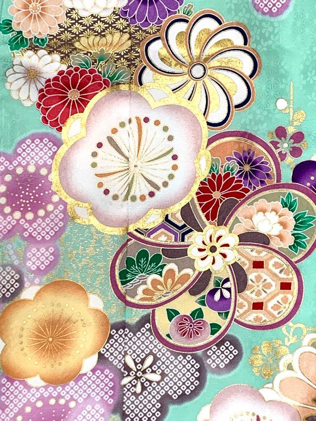 七五三 着物 7歳 コーディネートセット 上質合繊 四つ身の着物と結び帯 フルセット ミント系 ねじり梅 TSRKsz Fi 4 234 RR