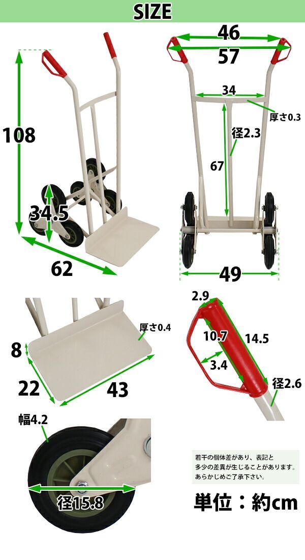 スチール三輪階段昇降機 耐荷重180 kg 段差 22 cm 220 mm スチール製 階段 三輪 3輪 台車 キャリー カート 運搬 物流 ツールカート 段差解消 階段昇降 運搬台車 運搬機 階段昇降運搬車 荷物 業務用 タ daisha h 10 選択 レッド