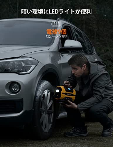 AstroAI エアーコンプレッサー 電動空気入れ 5 in 1 タイヤ プール 自動車用 AC|DC給電 150 PSI 自動電源オフ メモリ機能 LEDライト五種類変換ノズル 仏式|米式|英式 全バルブ対応 バイク 自転車 エアマットレス d 84 c dc 8