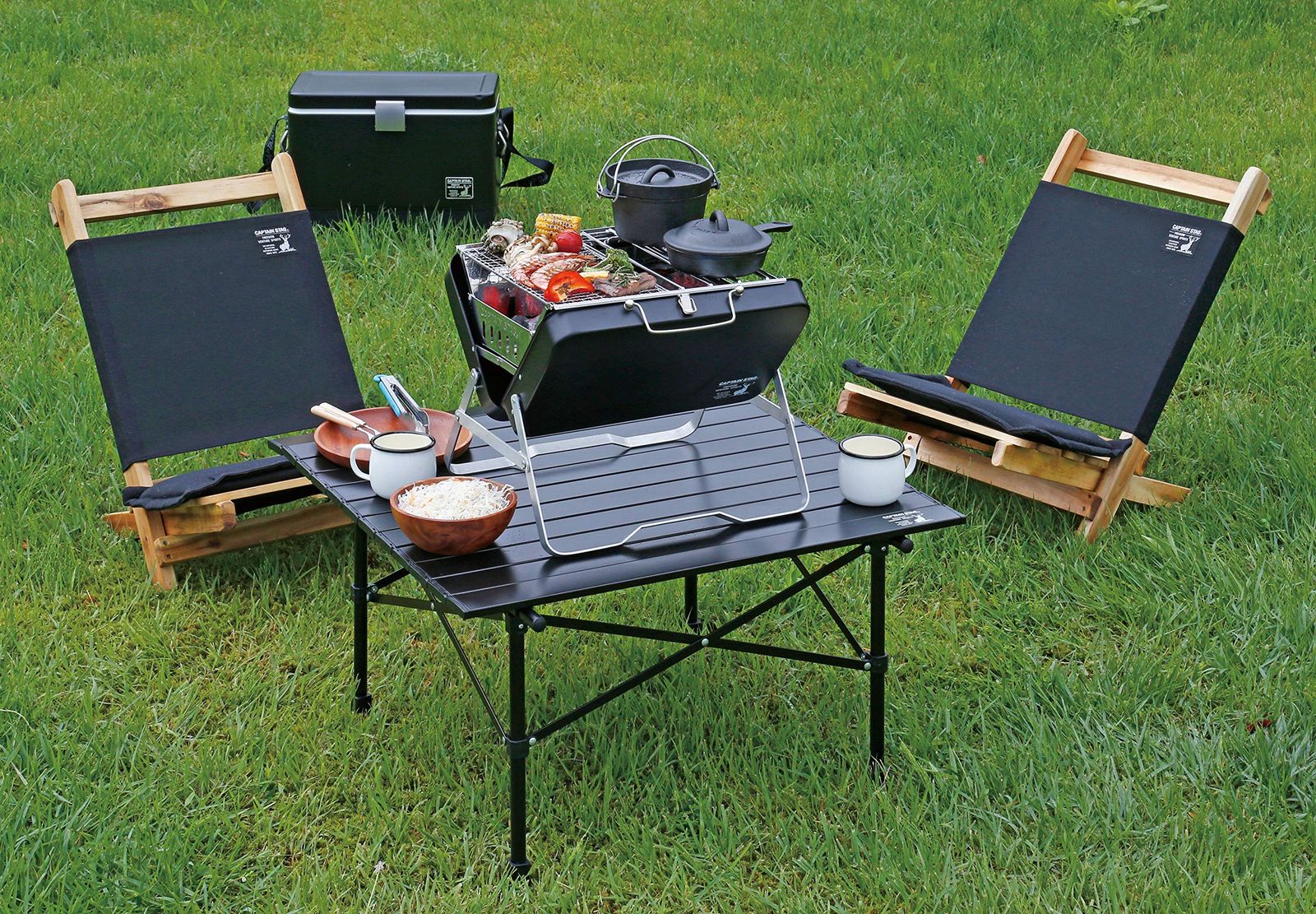 グリル 焚火台 バーベキューコンロ 1台4役 卓上グリル V型ファイアグリル STAG ゴトク 付き ワイド ブラック キャプテンスタッグ CAPTAIN CSブラックラベル UG 77