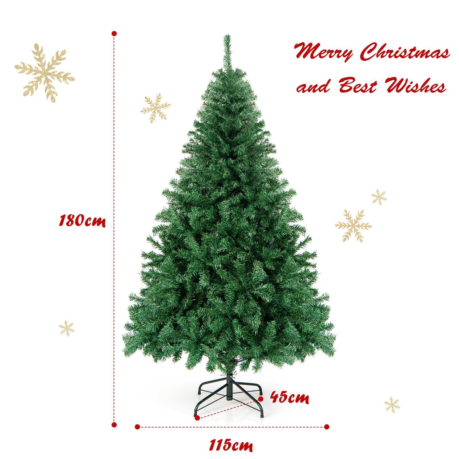 GYMAX クリスマスツリー 180cm christmas tree 1000本枝先 ヌードツリー 北欧 高級 自動展開式 組立簡単 PVC葉 メタルブラケット 安定感 立体感 ふんわり おしゃれ 飾り インテリア 正月 お祝い 室内 部屋 家庭 ショッピングモール (180センチ- グリーン)