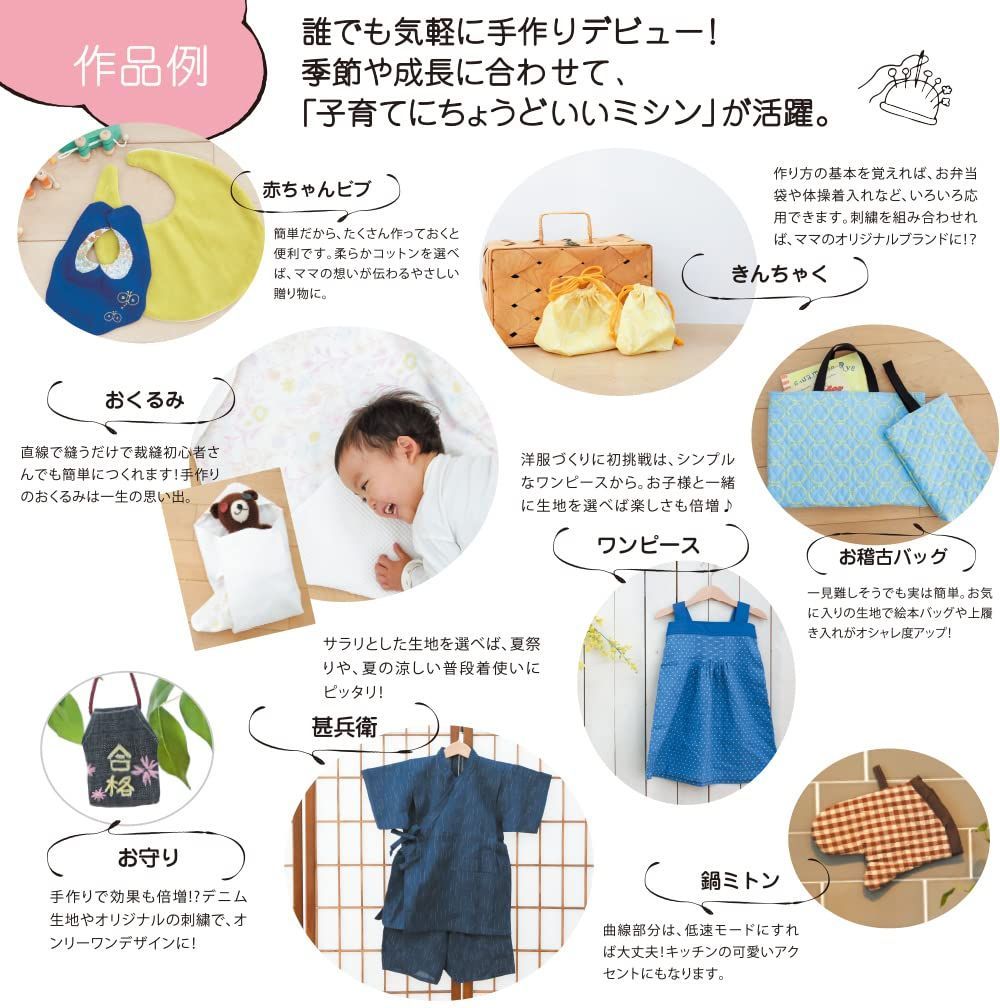 【シンプル】赤ちゃん小物や通園通学グッズを、誰でも簡単に作れるミシン。すぐに使いこなせるように、上級者向けの機能は思い切ってカットしながら、デニム生地の重ね縫いができるパワーはそのままに使用可能。