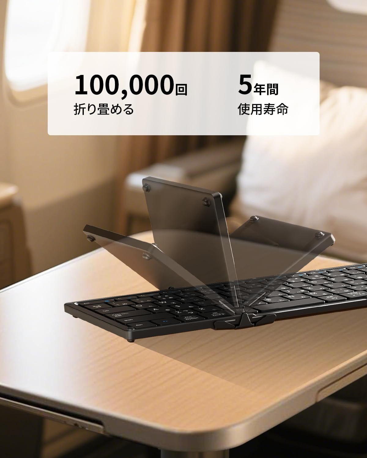 【耐久性抜群&使い勝手がよい】高品質素材で作られたヒンジは10万回以上の開閉に耐える設計で、高い耐久性を実現しています。折りたたみキーボードは強力なマグネットでしっかり固定されるため、カバンの中で勝手に開く心配もありません。また、ipadキーボードの上部には5つの便利なLEDライトを搭載しており、電池残量や接続状況が一目で確認可能です。