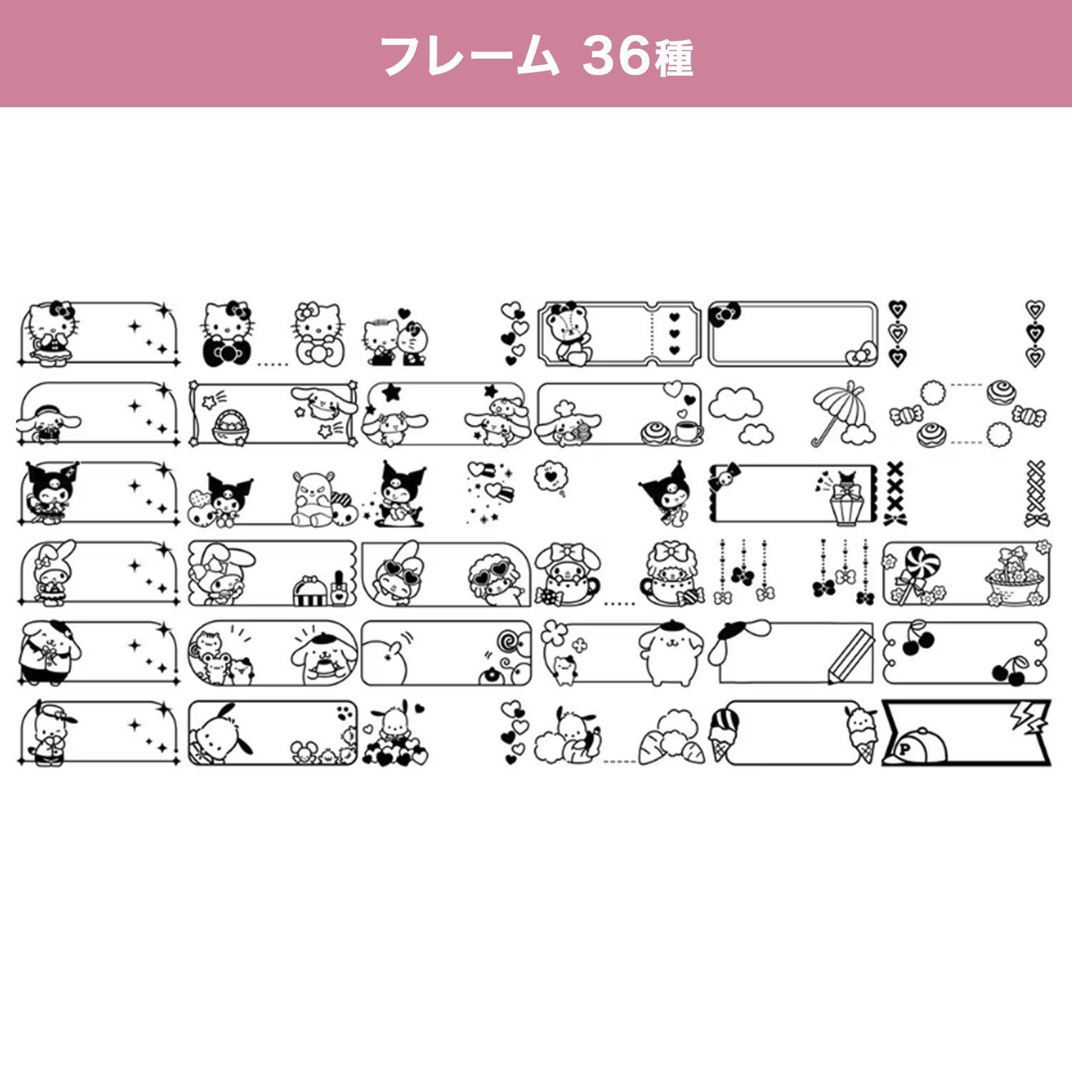 大好きなサンリオキャラクターズの絵文字やフレームなどを使ったラベルが