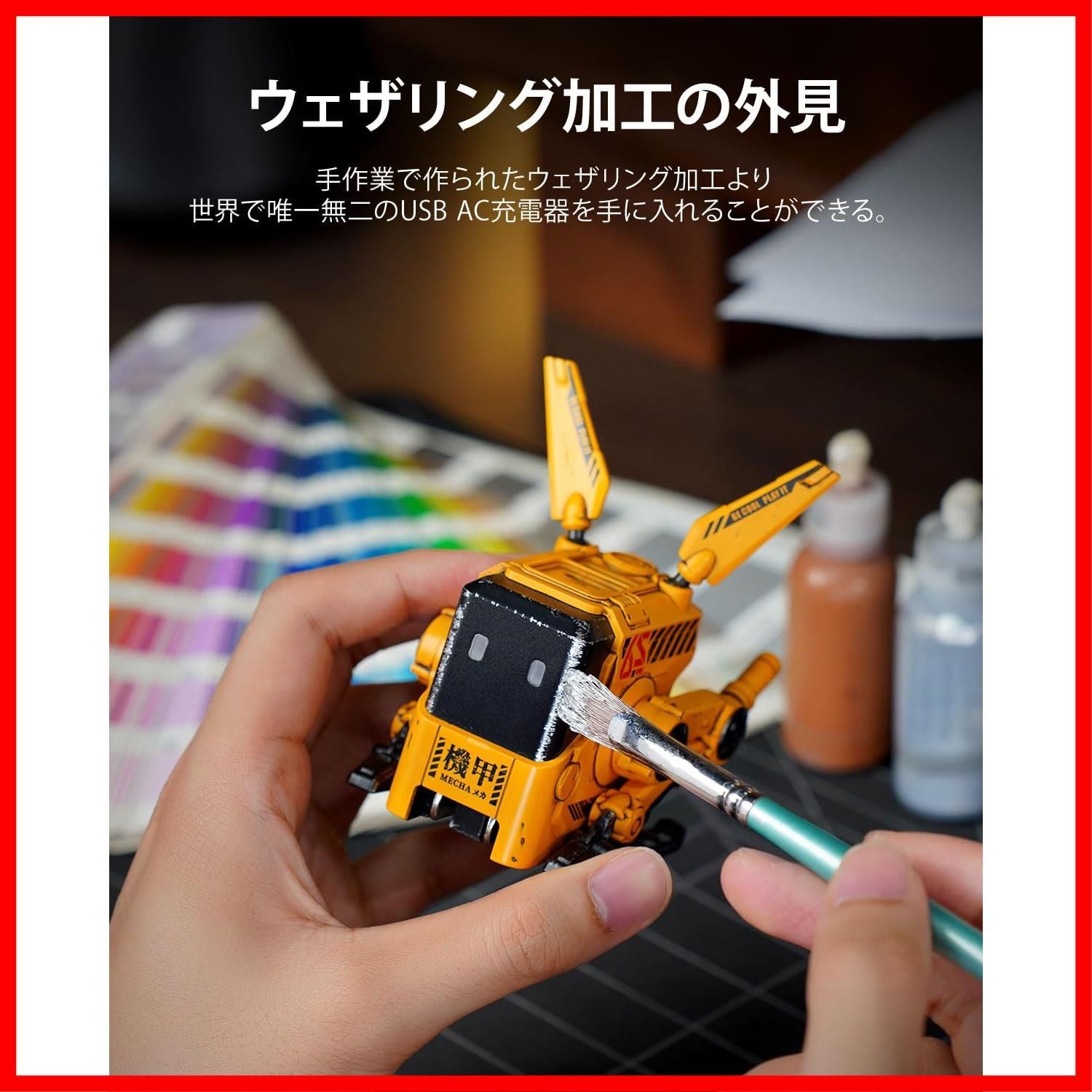 【個性が光る機甲スタイル】機械感あふれるデザインのPD充電器。デスクに飾ればインテリアとしても楽しめるだけでなく、最大3台のデバイスを同時に充電できる、65Wの超急速充電に対応しています。デザイン性と実用性を兼ね備えた一台です。さらに、一つひとつ手作業で施されたウェザリング加工により、世界にひとつだけのUSB AC充電器を手に入れることができます。