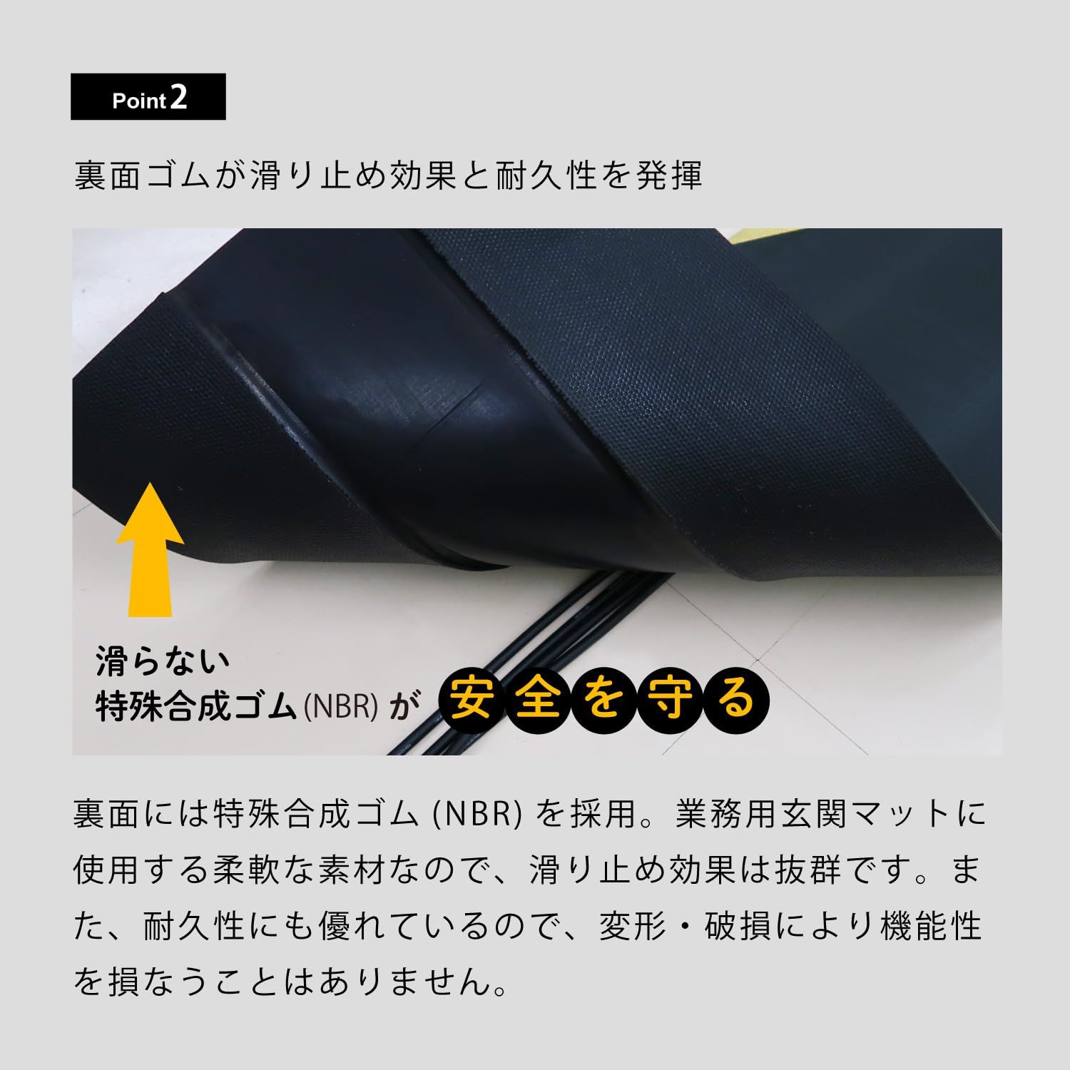 マット裏面に柔軟性の高いラバーを採用、床面にピッタリとフィットし、ズレやたくれが発生しにくい設計。