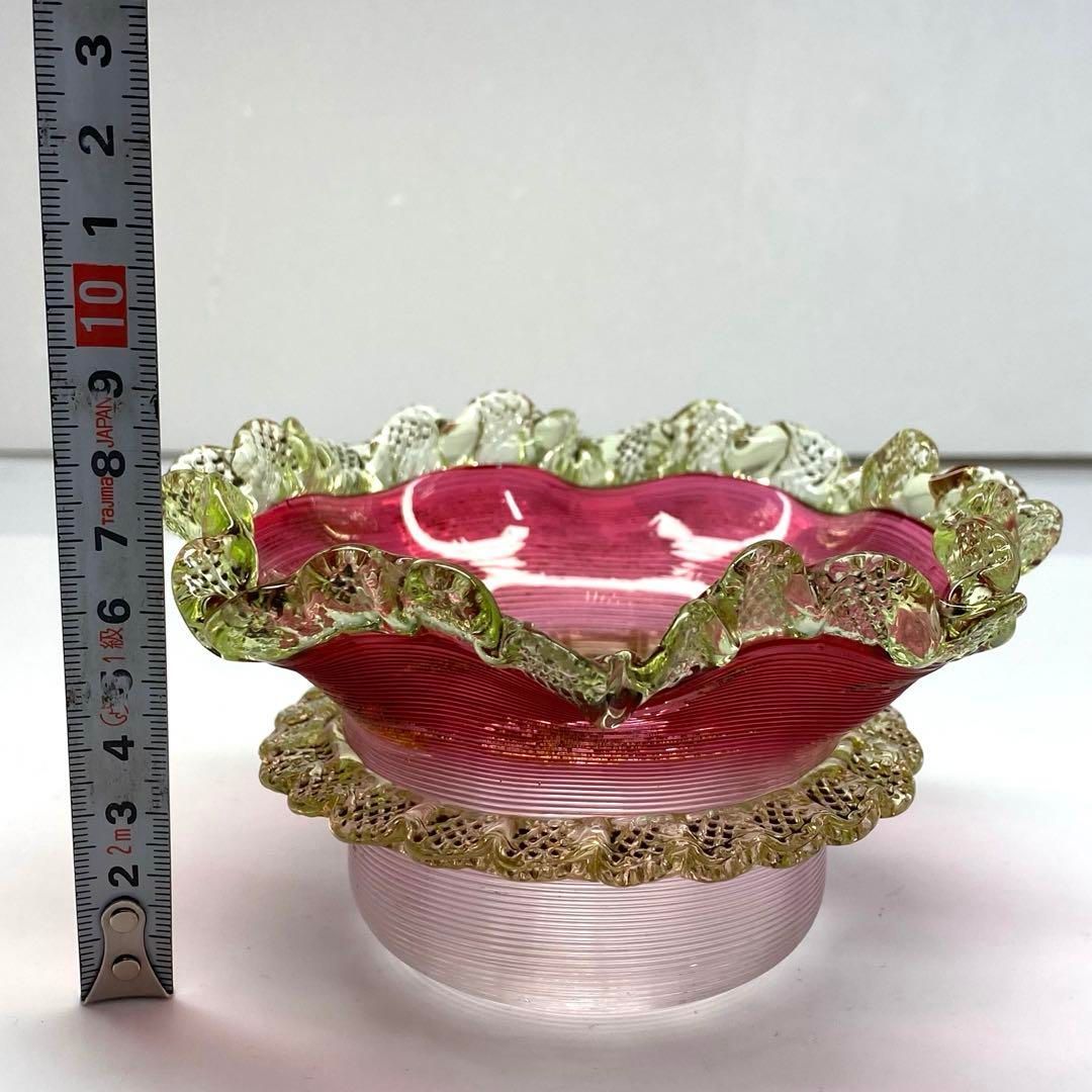 時代 ウラングラス フリル鉢 幅13 7㎝ 東な6 0503