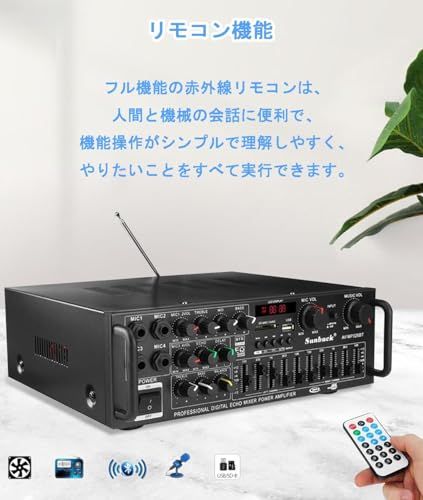 HiFiパワーホームアンプ パワーホームアンプ Bluetoothオーディオサウンドアンプ デジタルアンプ オーディオアンプ カラオケアンプ 110 V EQ USB 車載 4マイクカーアンプ ハイパワー 低騒音 家庭用 87 b 0939 d