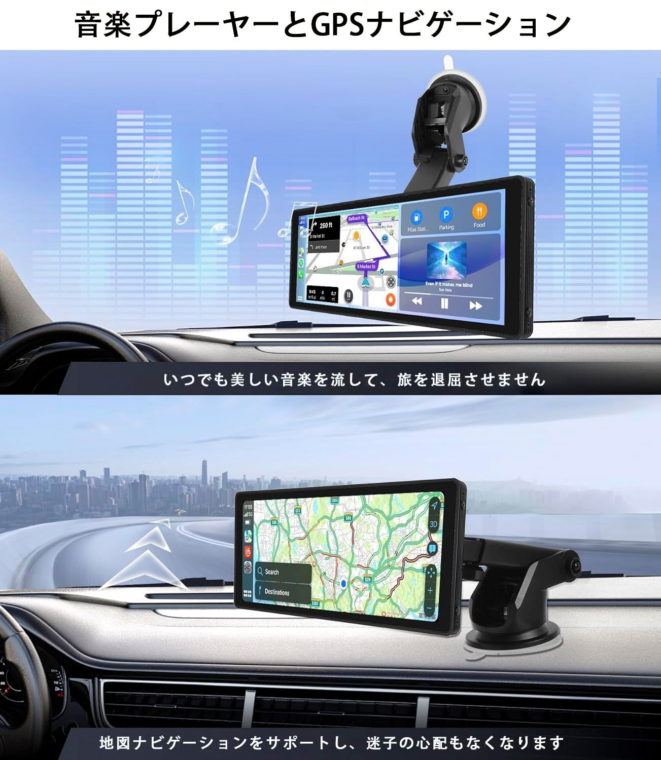 カーナビ 工事不要 ポータブル Bluetooth AUX入力 FM ワイヤレスカープレイ 車載モニター 取り付け簡単 タッチスクリーン 一体型 ディスプレイ オーディオ カー 日本語説明書付き Auto無線接続 Carplay Androi