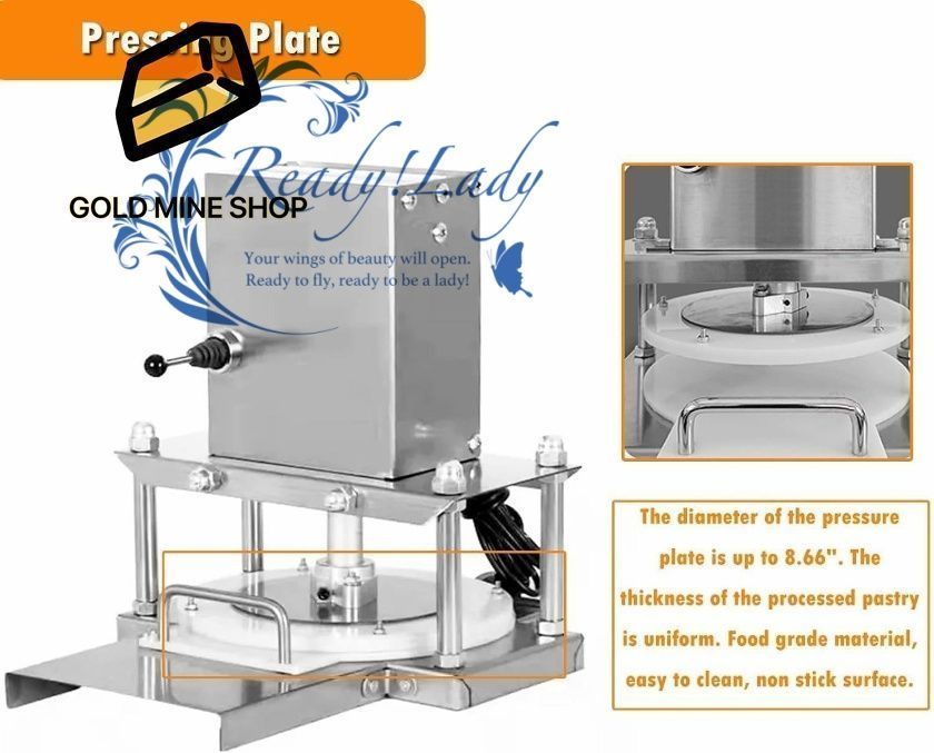 【8.66インチの圧力プレート】: 圧力プレートの最大直径は8.66インチです。加工された生地は均一な厚さです。食品グレードのPP素材で作られており、安全で健康的です。お手入れも簡単です。