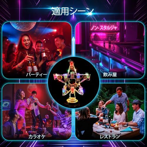 テキーラ観覧車 LED酒ボトルの表示棚 18穴 ワインラック 酒グラススタンド 充電式 自動カラーチェンジ グラスホルダー LED酒グラス 収納ラック 操作簡単 雰囲気作り 忘年会 新年会 KTVナイトクラブ カラオケ 飲み会 クリ a 9 b 8 277