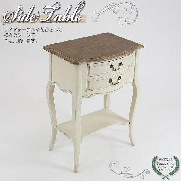 アンティーク調 サイドテーブル W約55 D約39 H約76 5 cm ホワイト 花台 2段 二段 引出し 引き出し アンティーク家具 木製 テーブル アンティーク風 アンティーク インテリア 家具 シャビーシック シャビー 白 antique h 06 wh